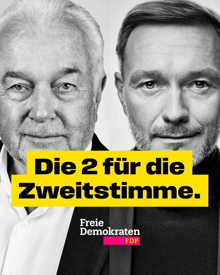 Wir Freie Demokraten wollen nicht nur einen Kanzlerwechsel, sondern einen Politikwechsel für Deutschland. Dafür braucht es eine starke FDP – mit Christian Lindner und Wolfgang Kubicki. 👉 Deshalb morgen, am 23.02. FDP wählen. #jetztFDP